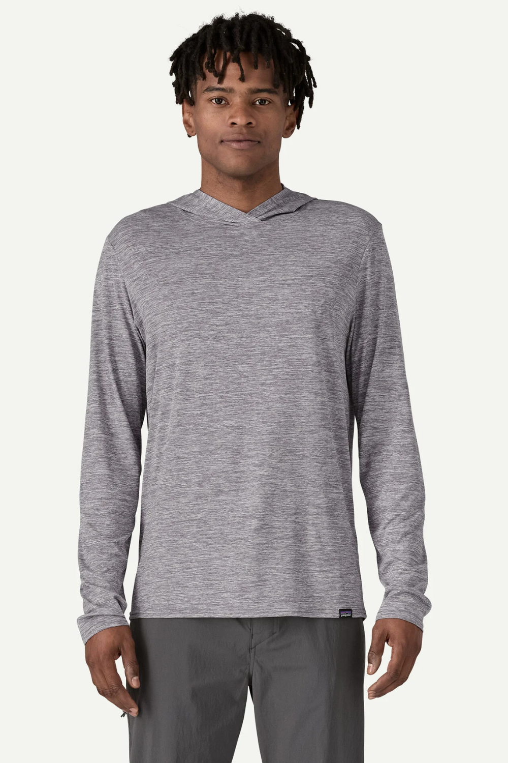 Man Wearing Pact Organic Cotton Hooded Sweatshirt in Gray